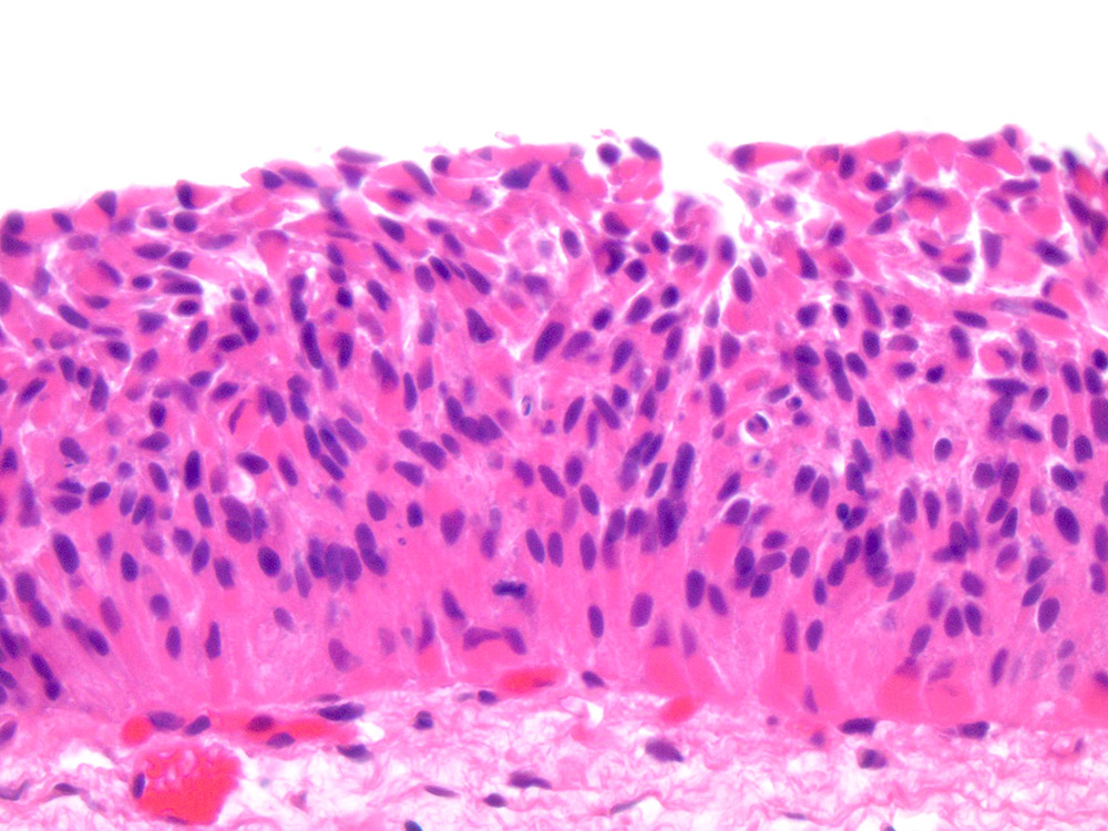 Bordering on reactive atypia vs low grade dysplasia : No significant inflammation noted: not sufficeint for CIS; I may get CK 20 and look for full thickness staining to confirm low grade urothelial dysplasia.