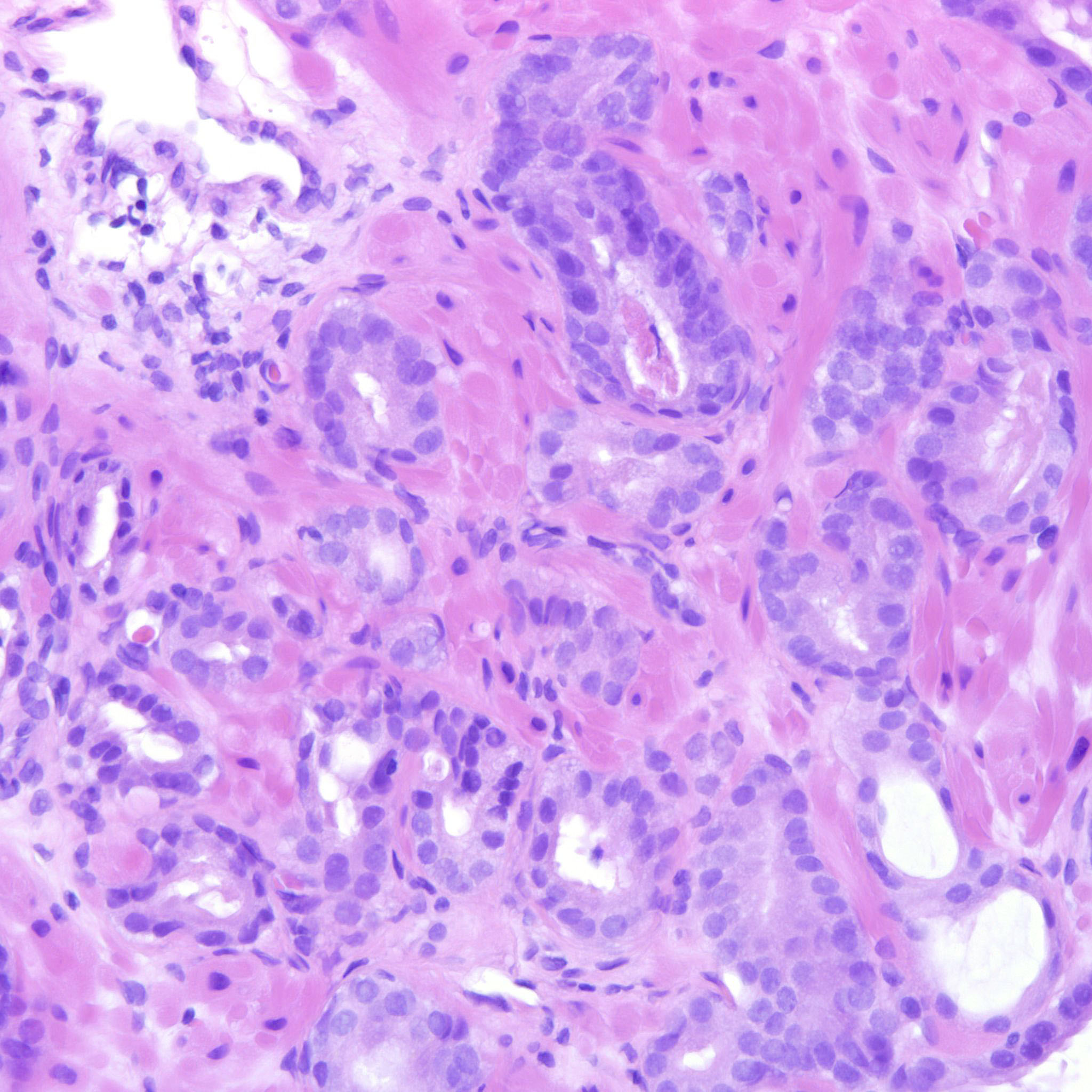 Mainly well-formed separate glands with a tiny component of poorly formed glands