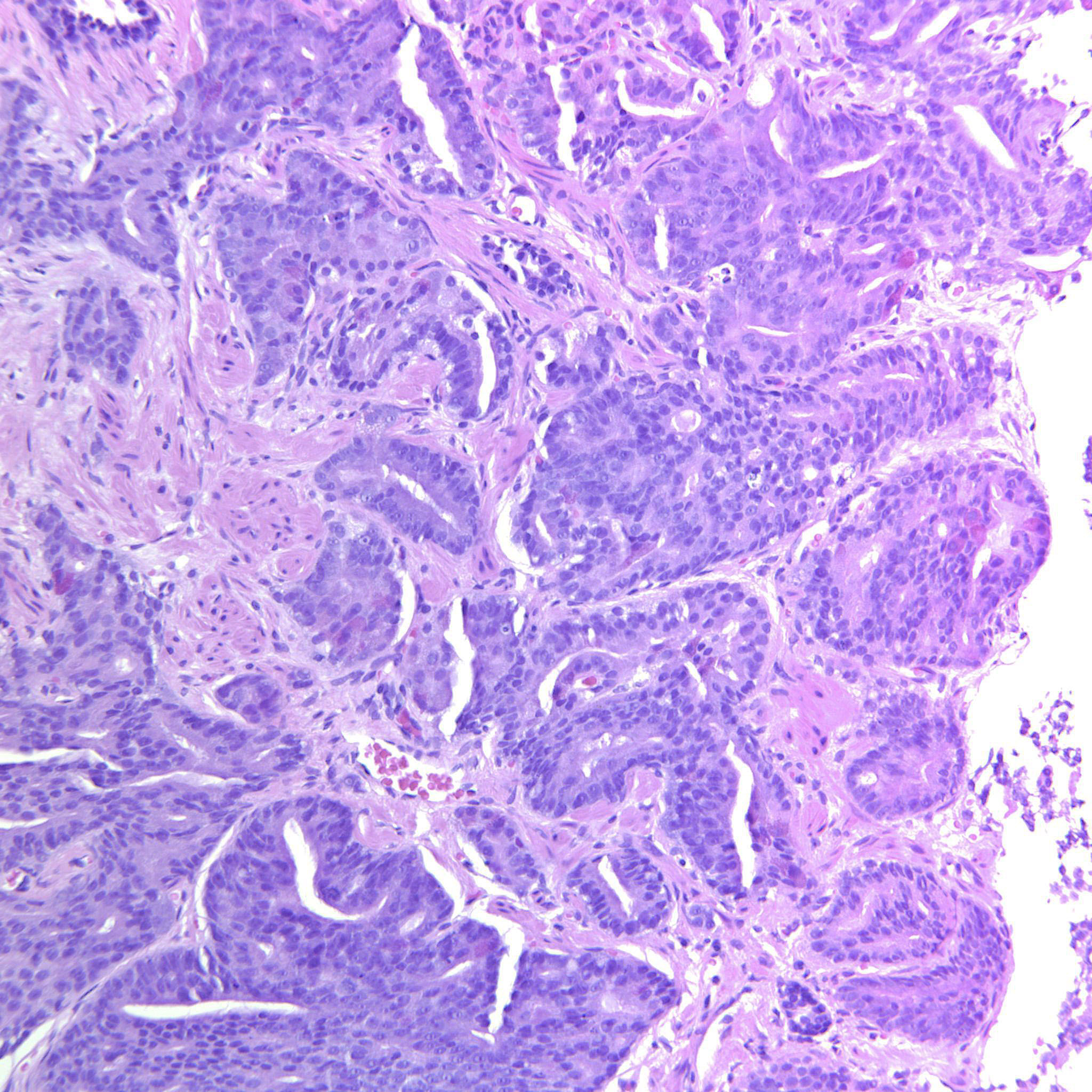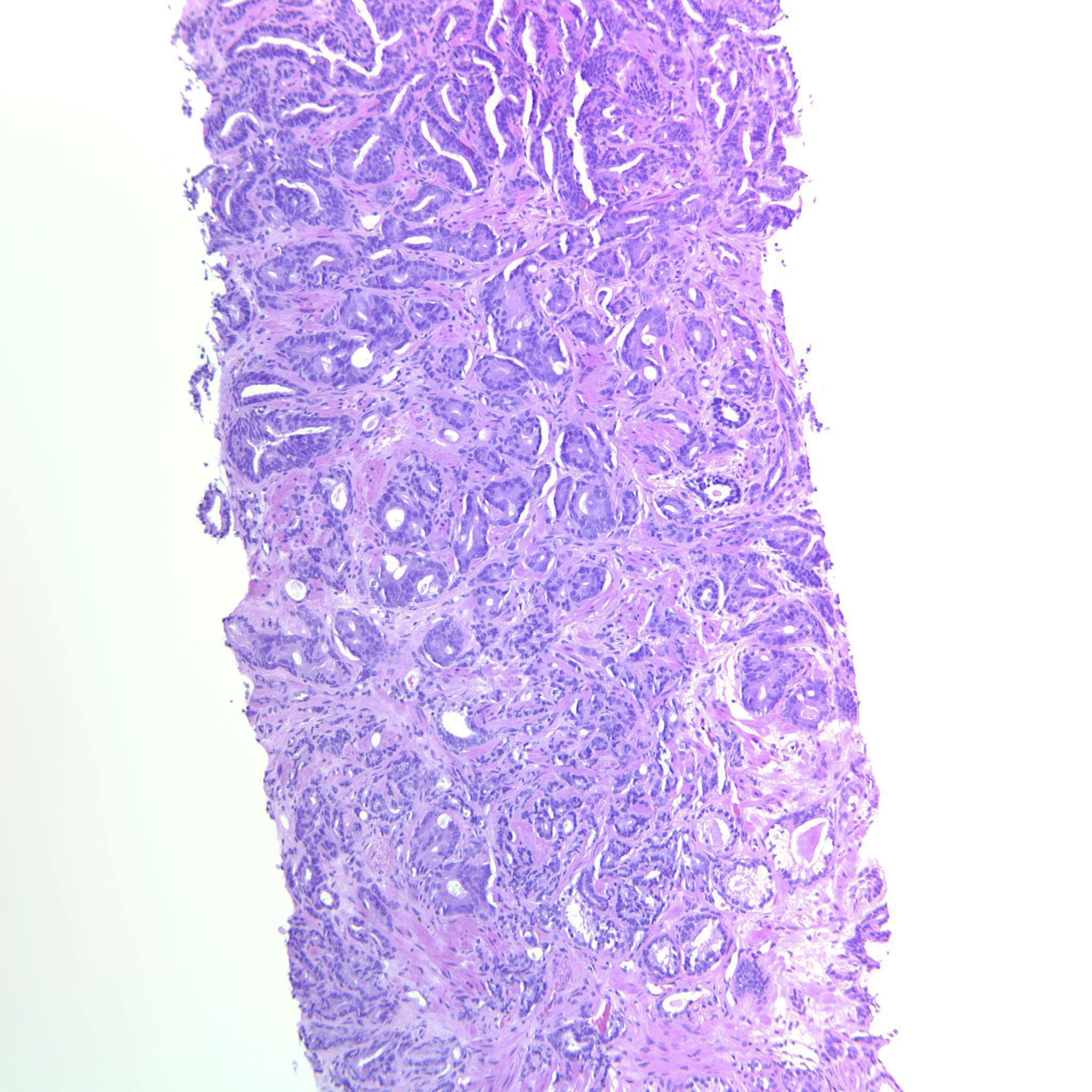 quite convinced that this patient should be treated like a 8, but there are too many 3 elements. Would make a comment on the stroma, scleroti stroma in my experience bad prognostic fator |